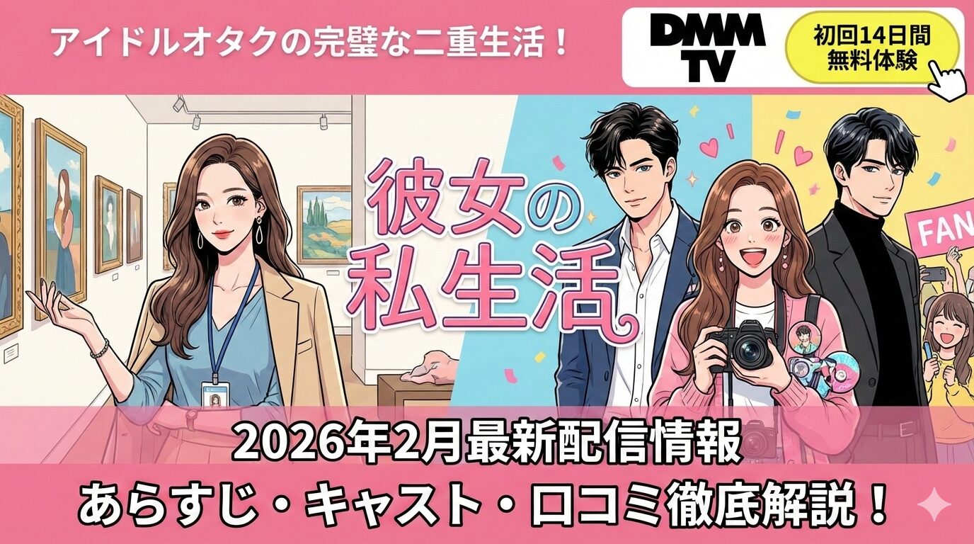 「彼女の私生活」はアイドルオタクの美術館キュレーターとミステリアスな新任館長の偽装恋愛を描いた大人気韓国ドラマです。本記事では、2026年2月時点の最新配信状況をはじめ、あらすじ、キャスト、視聴者の口コミ、見どころまで徹底的にまとめました。